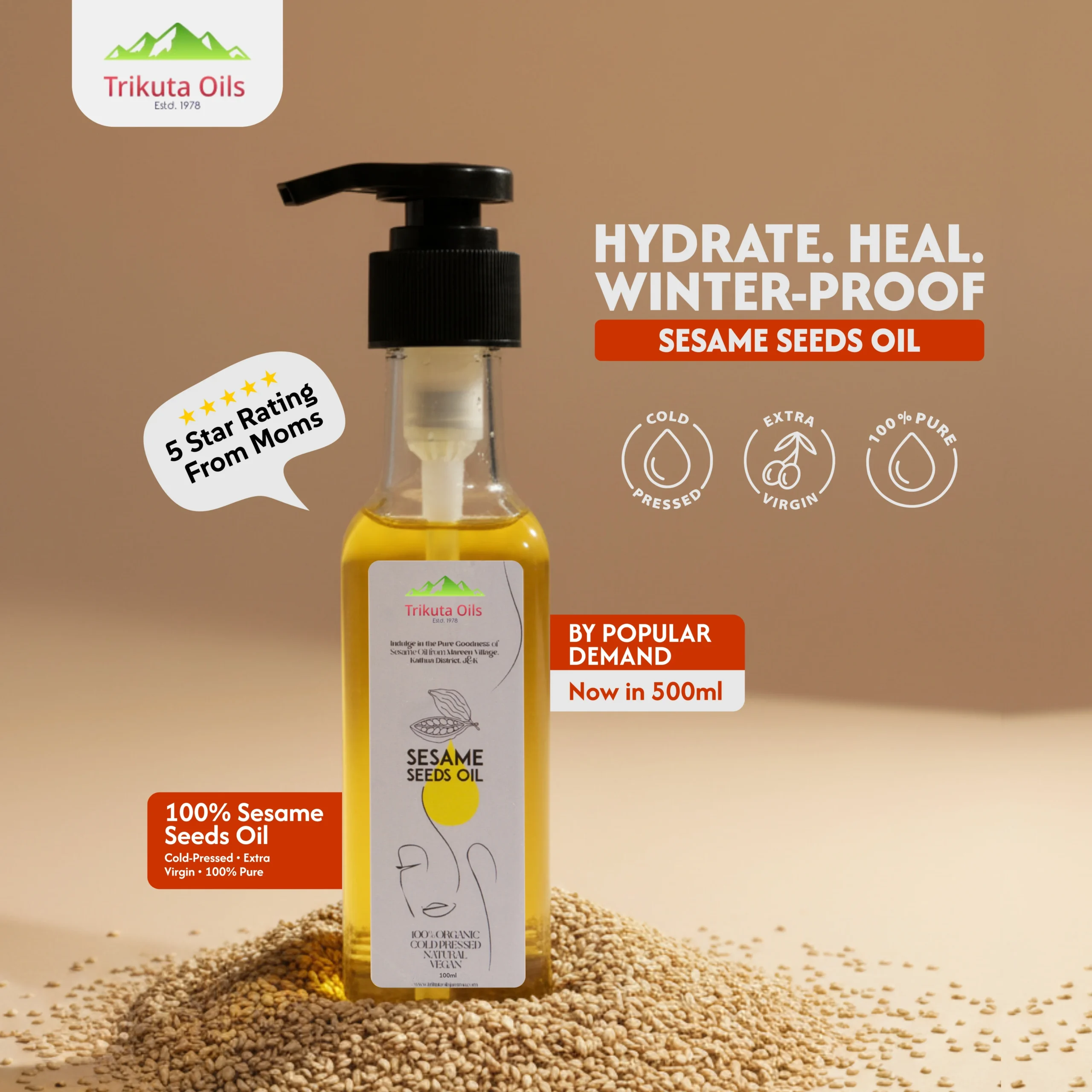 Great for a face massage; it absorbs well and gives a natural glow. It’s my favorite new sesame oil.