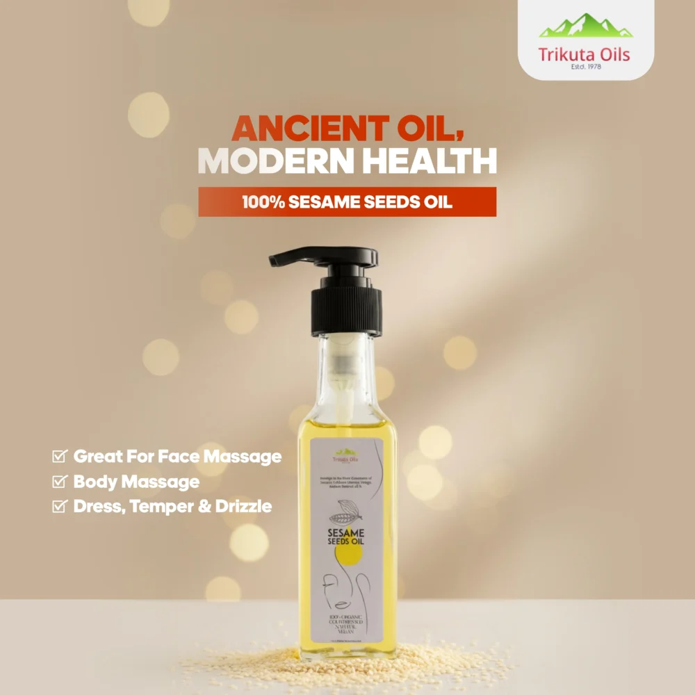 Great for a face massage; it absorbs well and gives a natural glow. It’s my favorite new sesame oil.